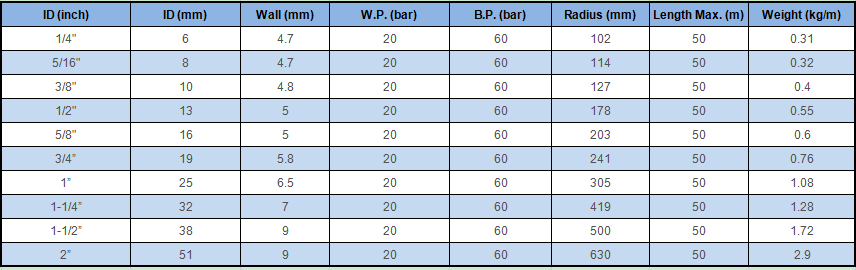 Tubo: Caucho sintético NBR, resistente al aceite y al combustible